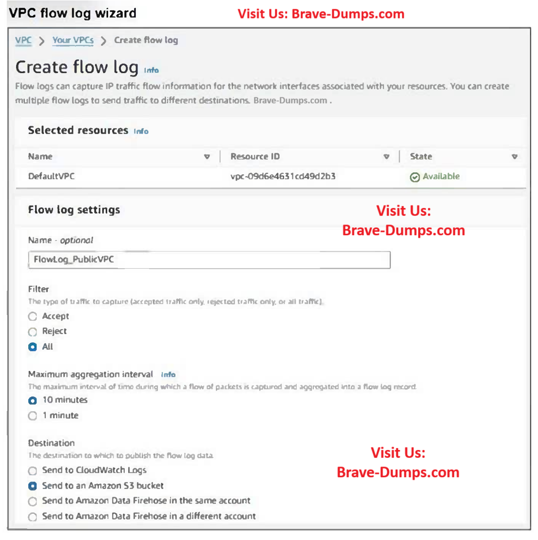 An experienced AWS administrator is creating a new virtual public cloud (VPC) flow log with the settings shown in the exhibit. What is the purpose of this configuration? (Choose one answer)