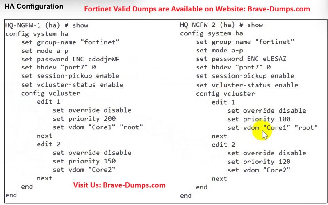 Refer to the exhibit. An HA configuration of an active-active (A-A) cluster with the same HA uptime is shown. You want HQ-NGFW-2 to handle the Core2 VDOM traffic. Which modification must you make to achieve this outcome? (Choose one answer)