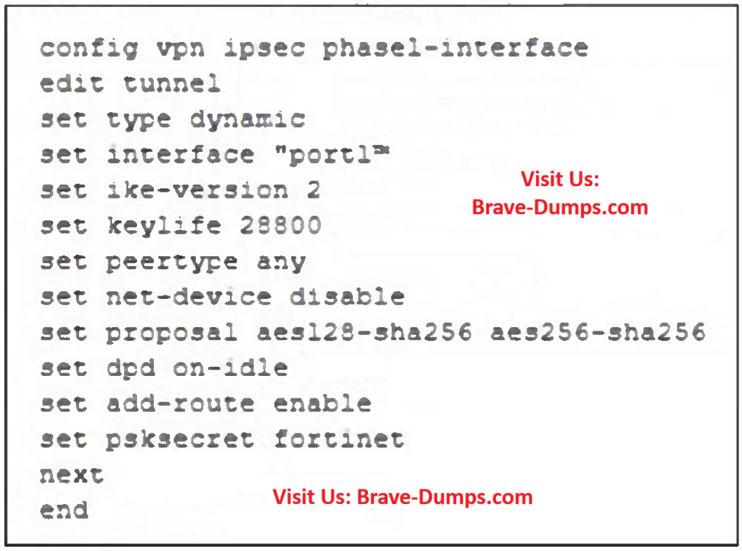 Refer to the exhibit. A partial VPN configuration is shown. Which statement about this VPN IPsec phase 1 configuration is correct? (Choose one answer)
