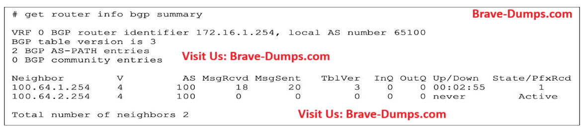 Refer to the exhibit. The output of the get router info bgp summary command is shown. Which statement regarding adjacencies between the local router and its neighbors is correct? (Choose one answer)