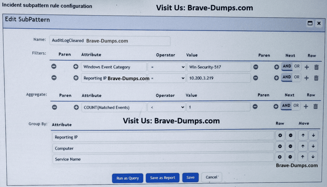 Why not C: Reporting IP, Computer, and Service Name are valid, non-conflicting Group By attributes.