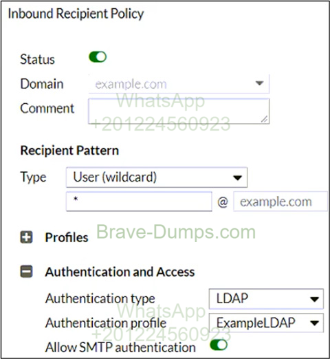 Refer to the exhibit, which shows an inbound recipient policy. After creating the policy shown in the exhibit, an administrator discovers that clients can send unauthenticated emails using SMTP. What must the administrator do to enforce authentication? (Choose one answer)