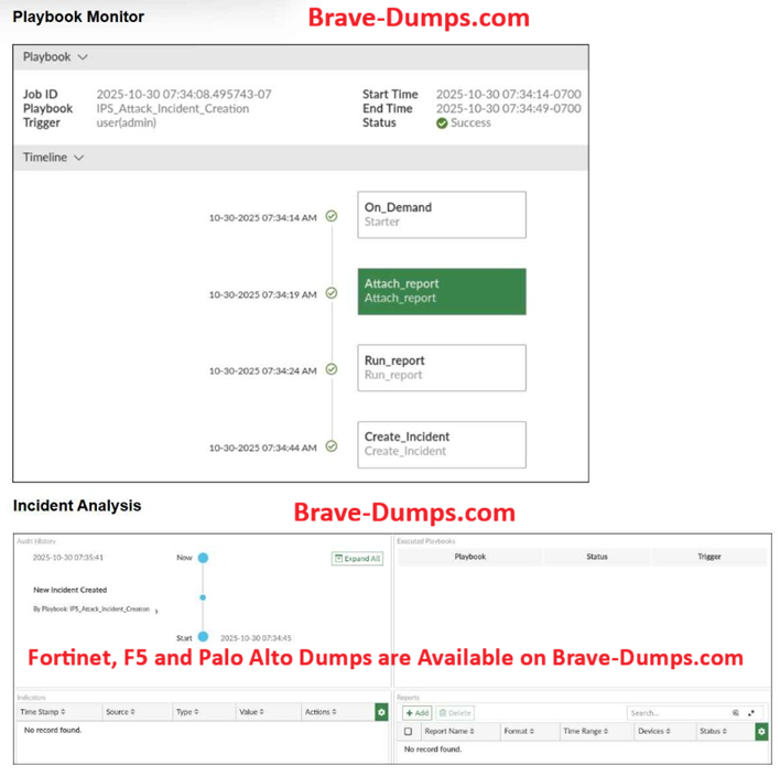 Refer to the exhibits. The Playbook Monitor dashboard and the analysis of the corresponding incident analysis are shown. You created the playbook with the objective of automatically attaching the report to the incident that was created. Which two statements are correct? (Choose two answers)