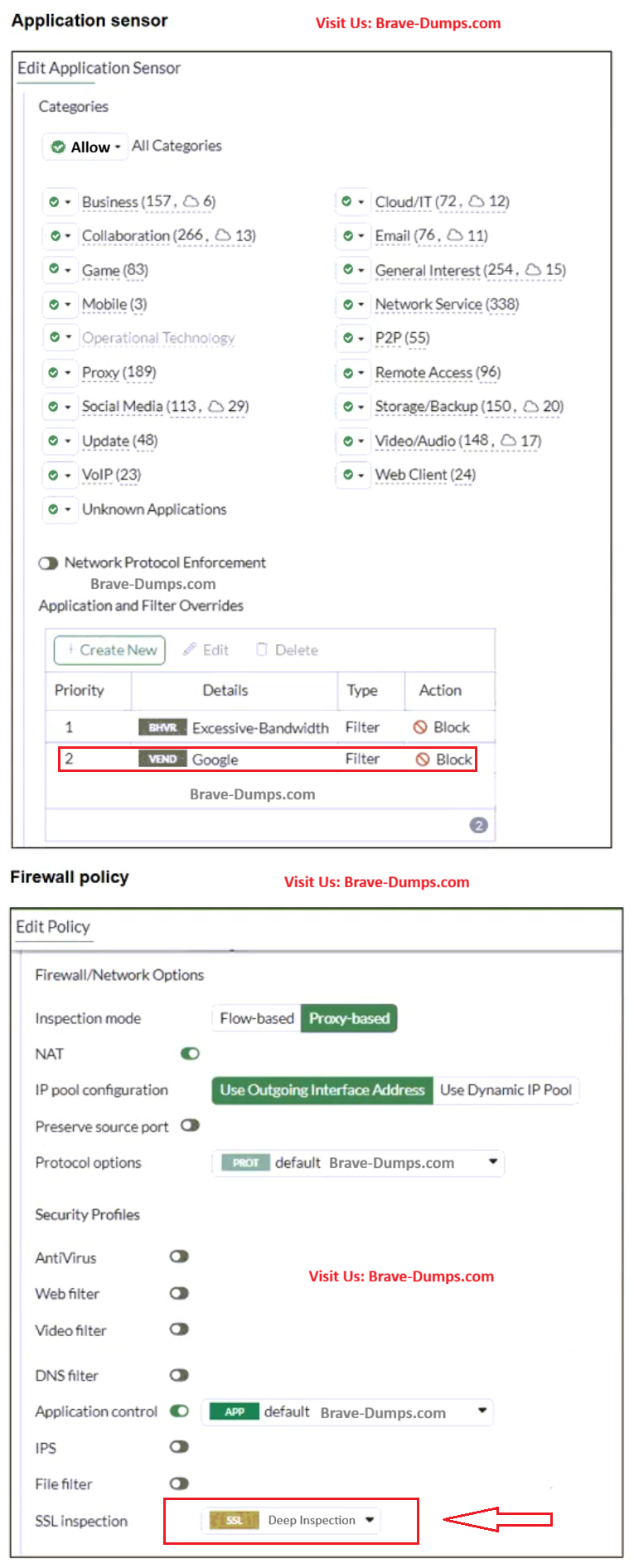 Refer to the exhibits. You have implemented the application sensor and the corresponding firewall policy as shown in the exhibits. You cannot access any of the Google applications, but you are able to access www.fortinet.com . What would you do to resolve this issue? (Choose one answer)