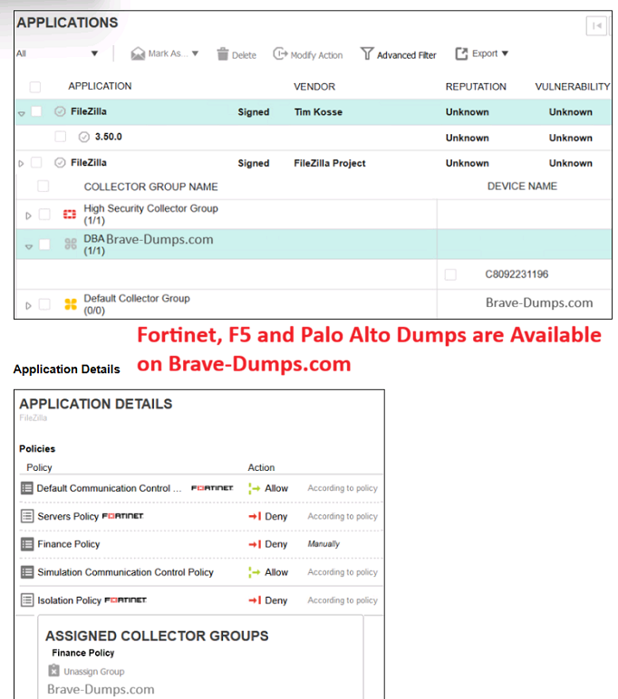 Refer to the exhibits. The application policy logs and application details are shown. Collector C8092231196 is a member of the Finance group. In this scenario, what must you do to block the FileZilla application? (Choose one answer)