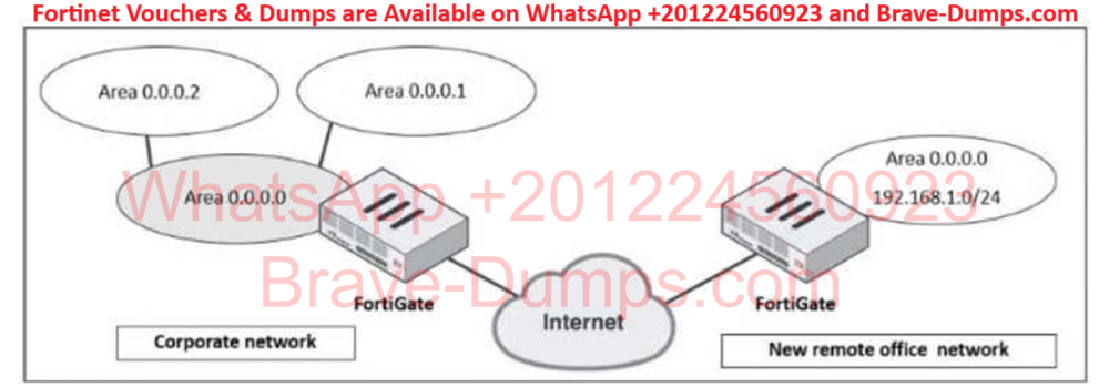 dynamic route exchange between the corporate FortiGate and the remote office FortiGate. IPsec