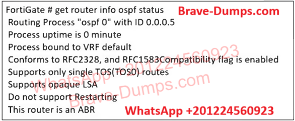 Refer to the exhibit, which contains the partial output of an OSPF command. An administrator is checking the OSPF status of a FortiGate device and receives the output shown in the exhibit. What two conclusions can the administrator draw? (Choose two answers)