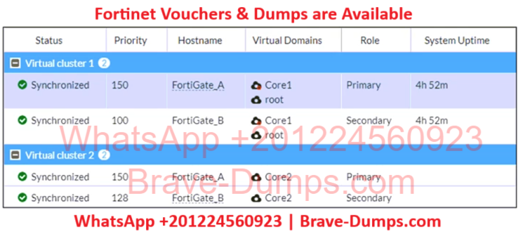 Refer to the exhibit, which shows the HA status of an active-passive cluster. An administrator wants FortiGate_B to handle the Core2 VDOM traffic. Which modification must the administrator apply to achieve this? (Choose one answer)