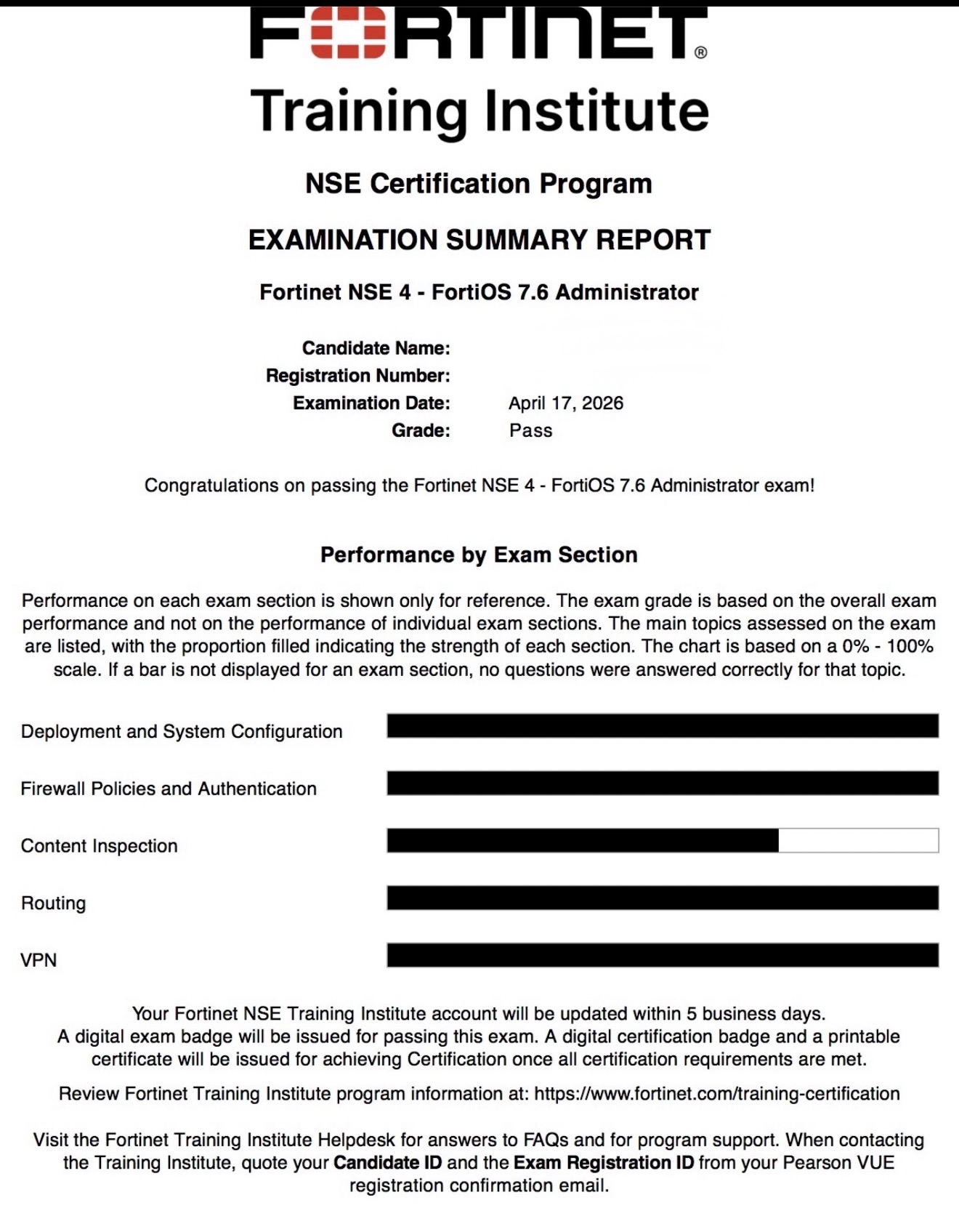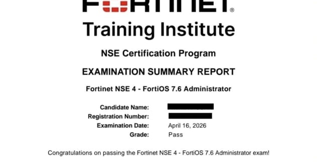 Hidden Name Product: ● NSE 4 - FortiOS 7.6 Administrator Exam Voucher