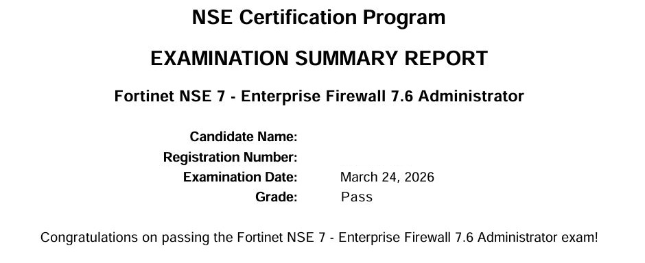 Hello Dears, some clients reported that new questions have been added to the NSE4 FortiOS 7.6 exam. We immediately verified these updates by checking the real exam, and added these new questions, the dump is now 100% valid and up to date. We are proud to confirm that we have the most accurate and reliable versions of this dump, good luck! :)