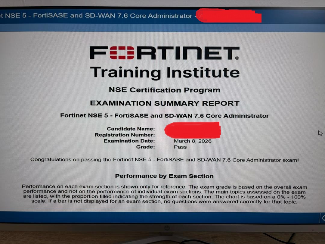 Dump is valid and accurate, I passed NSE5 FortiSASE and SD-WAN 7.6 Exam