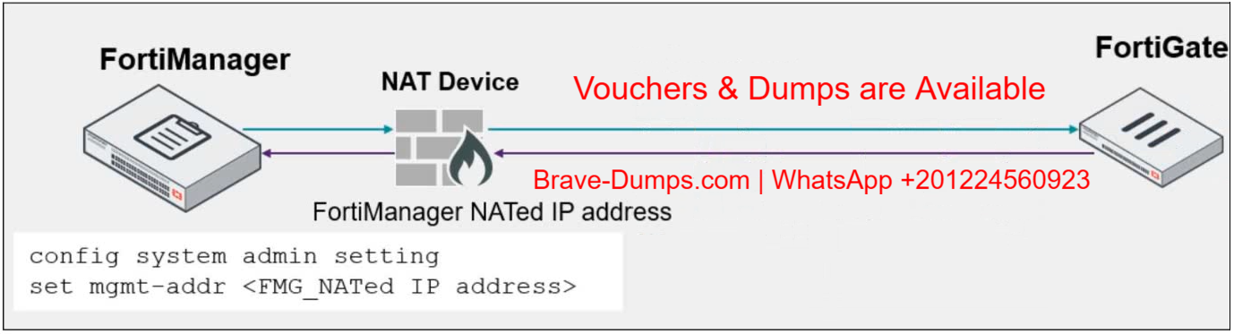 - D. During discovery, FortiManager sets both the FortiManager NATed IP address and NAT device IP address on FortiGate.