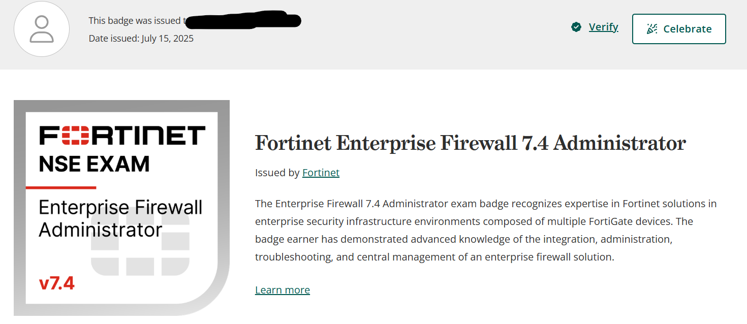 100% Score in the Real Enterprise Firewall 7.4 Exam (EFW_AD-7.4) at the Pearson VUE Testing Center