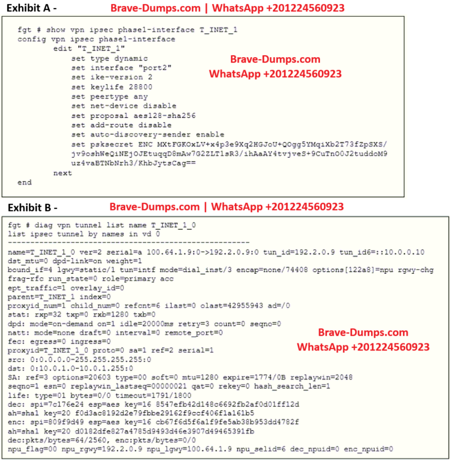 - D. FortiGate facilitated the negotiation of the T_INET_1_0 ADVPN shortcut over T_INET_1.