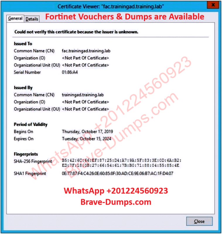 Refer to the exhibit showing certificate values.
