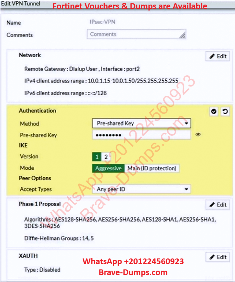 Examine the IPsec VPN phase 1 configuration shown in the exhibit.