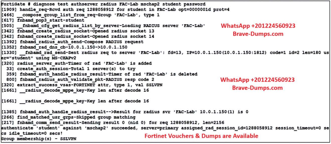 While testing the configuration, the administrator noticed that the diagnose test authserver command worked with PAP; however, authentication requests failed when using MSCHAP2.