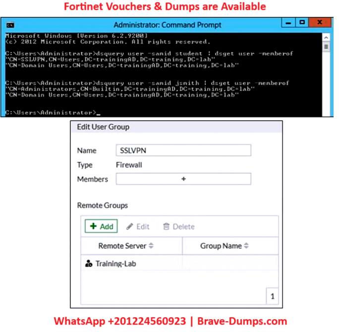 - A. In the SSL VPN user group configuration, set Group Name to CN=SSLVPN,CN=Users,DC=trainingAD,DC=training,DC=lab.