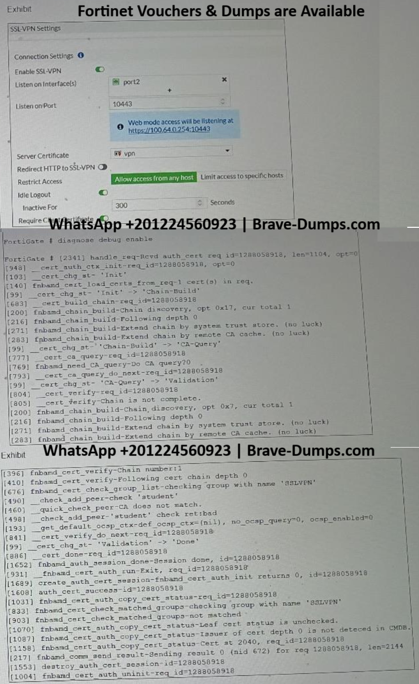 Examine the debug output and the SSL VPN configuration shown in the exhibits.