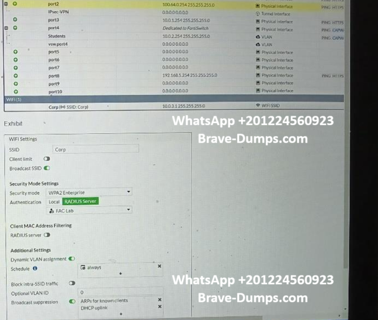 An administrator has configured FortiGate with an SSID (Corp) with dynamic VLAN assignment, and also configured a RADIUS server to send IETF 64, IETF 65, and IETF 81 VSAs.