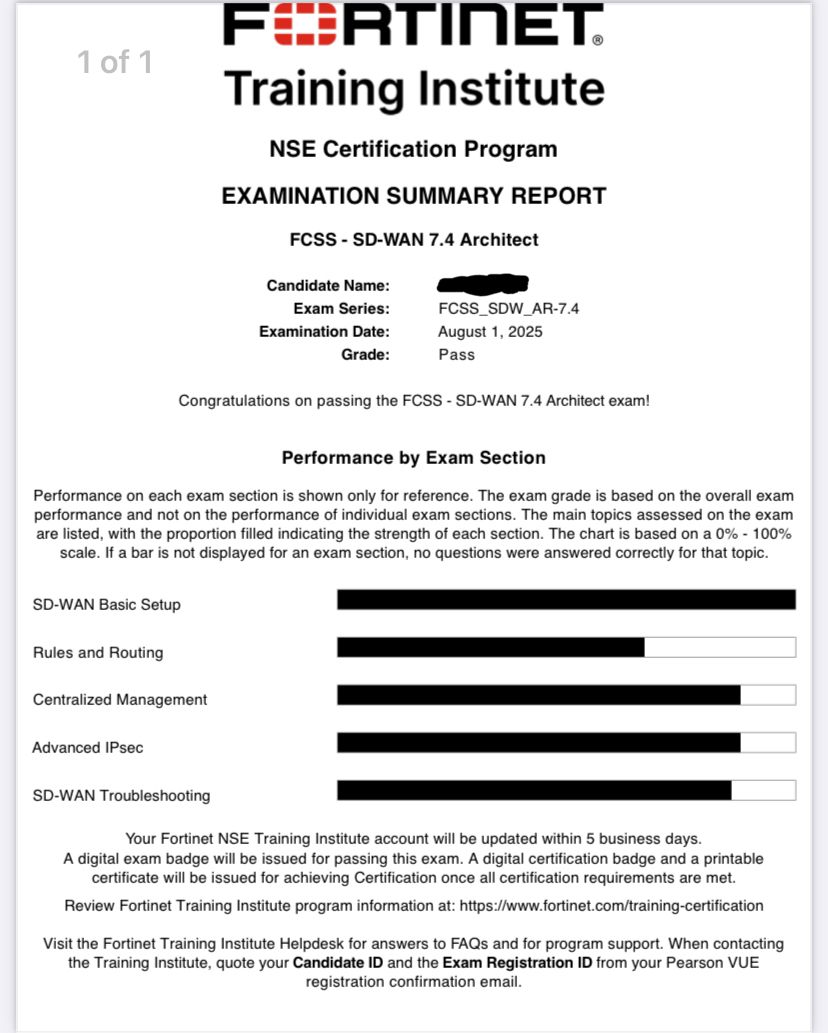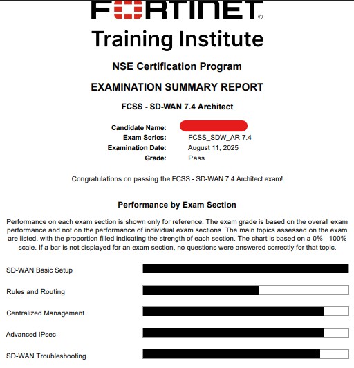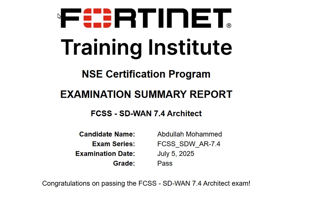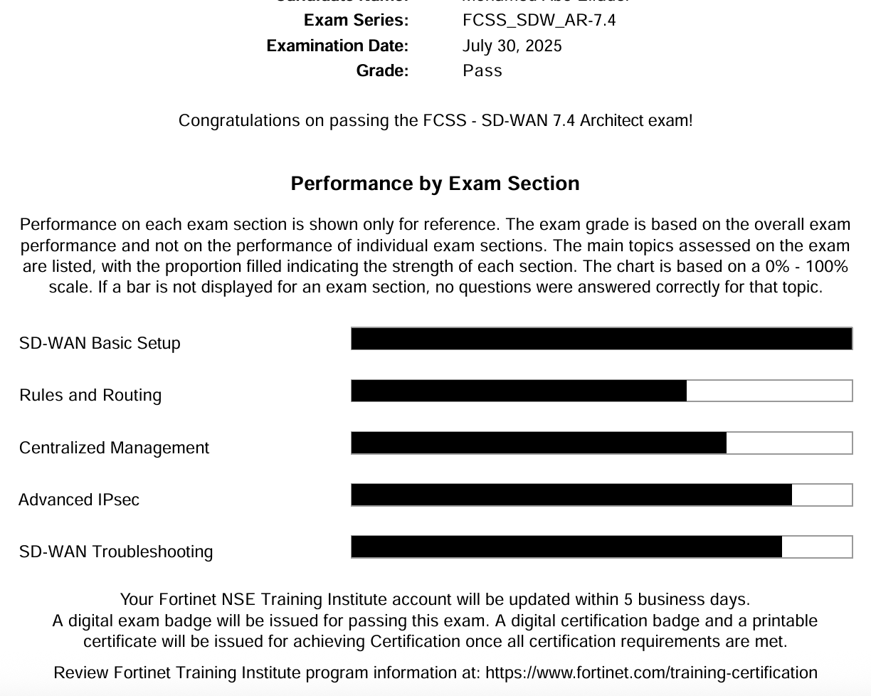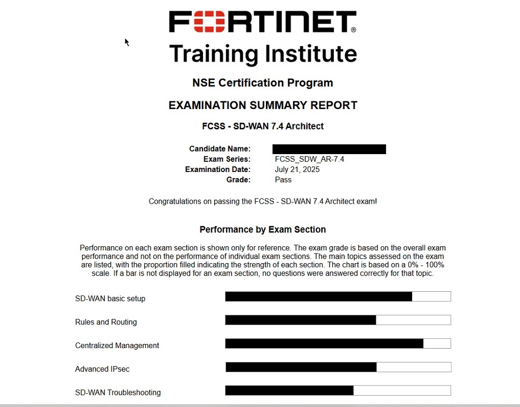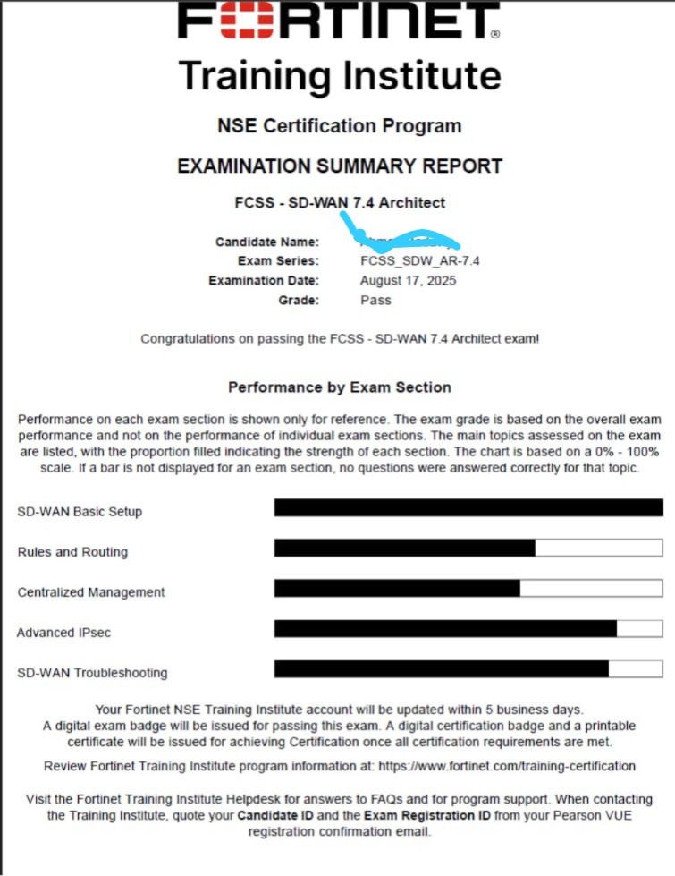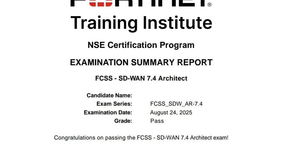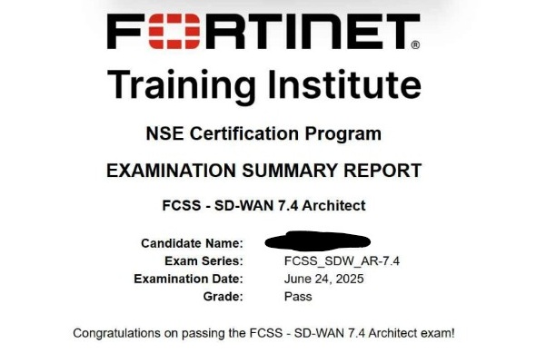 Hello, I passed FCSS - SD-WAN 7.4 Exam, Thank you for the support.