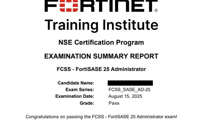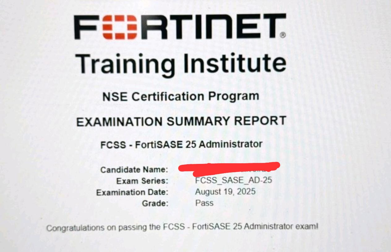 Passed FCSS_SASE_AD-25, team brave-d thank you for the support. 30.12.2025. Happy new year.