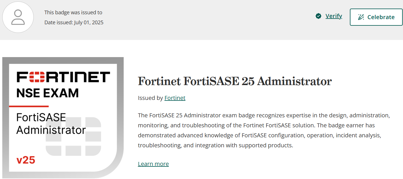 Please note that the exam "FCSS - FortiSASE 25 Administrator Exam" is no longer offered by Fortinet and is not available for booking through Pearson VUE.