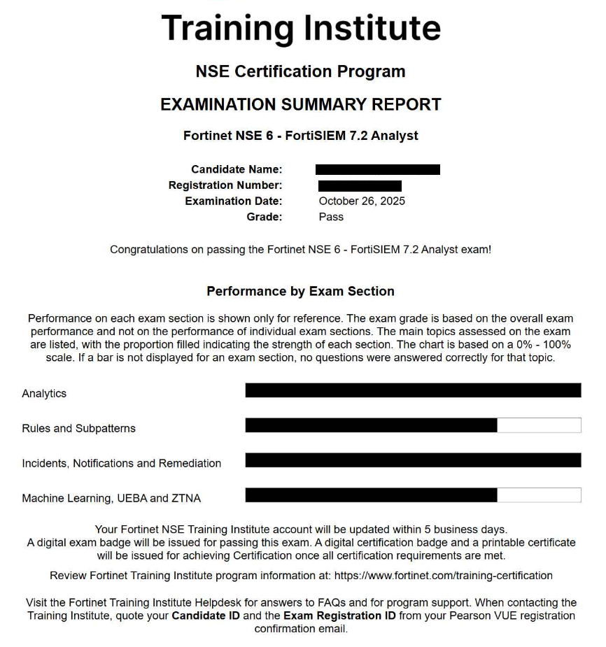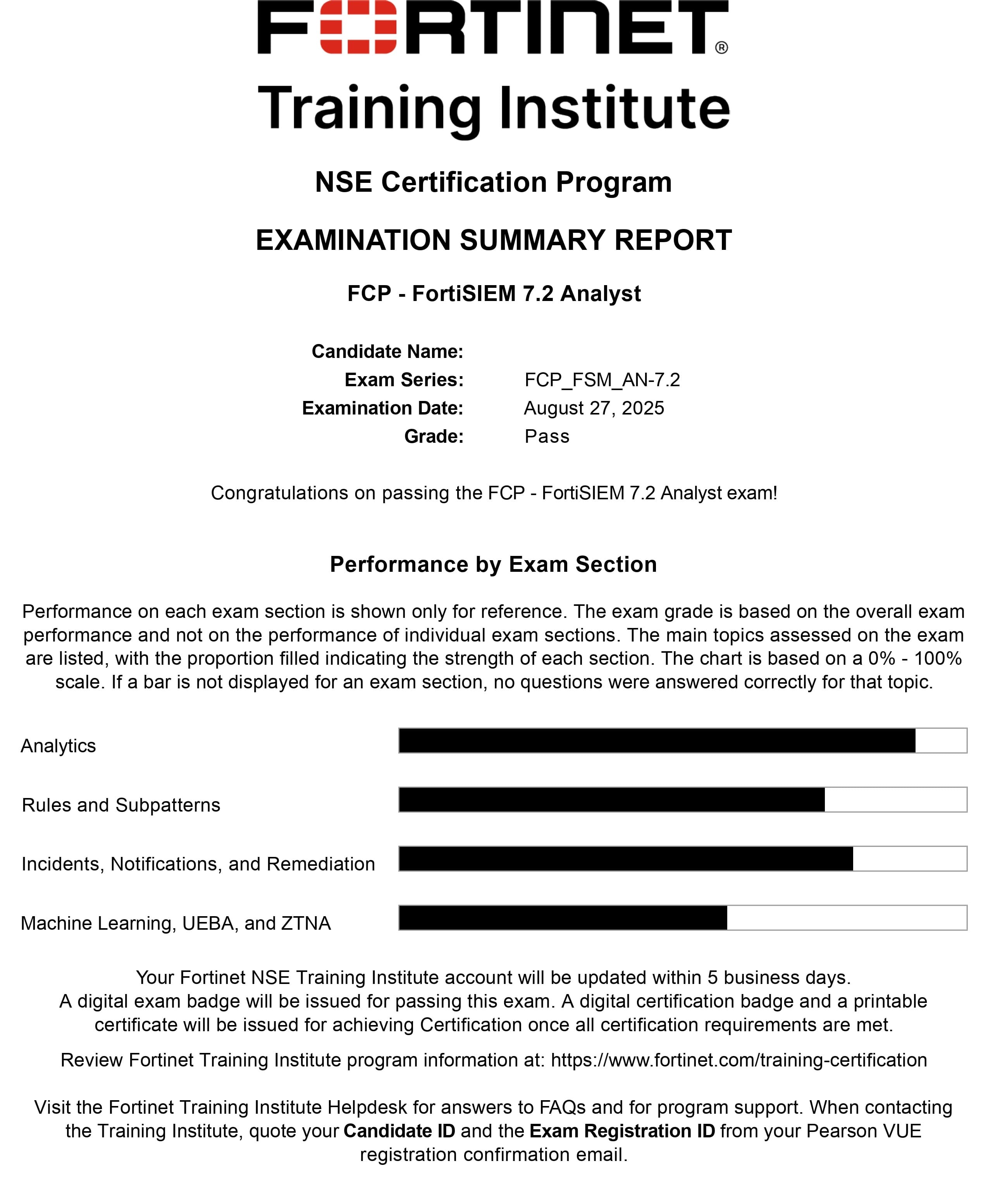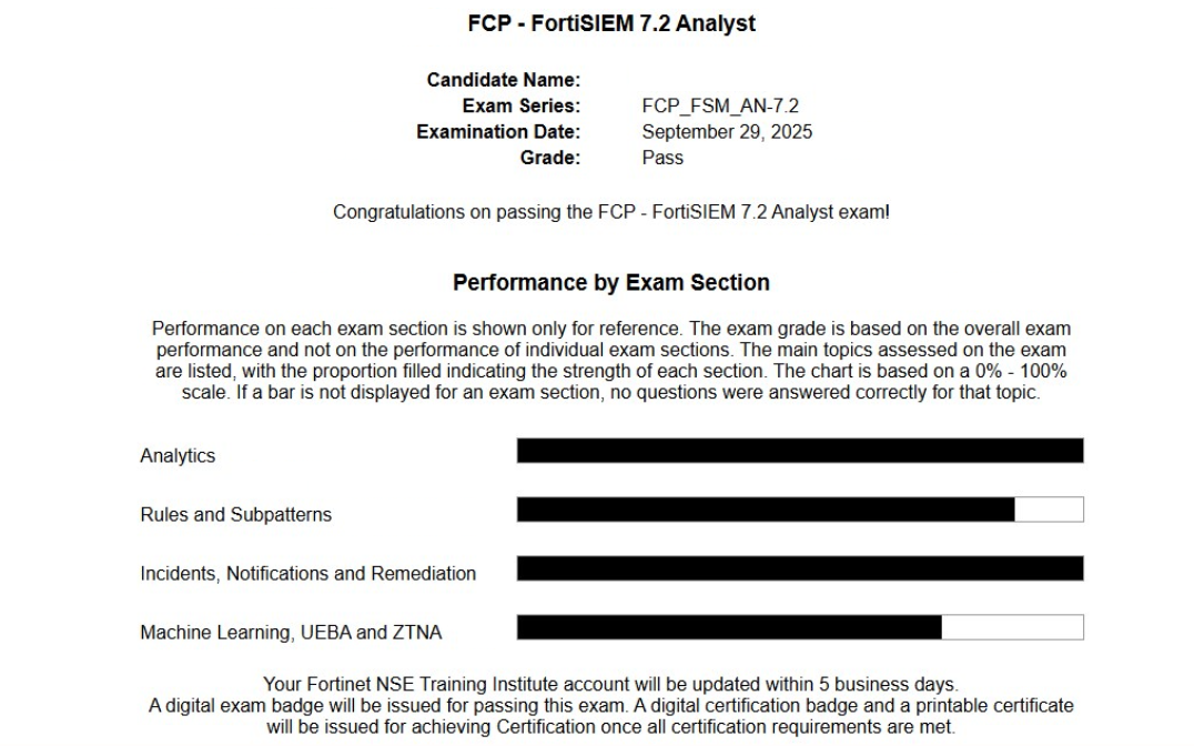 ● 100% Score in the Real FortiSIEM 7.2 Analyst Exam (FSM_AN-7.2 Exam) at the Pearson VUE Testing Center