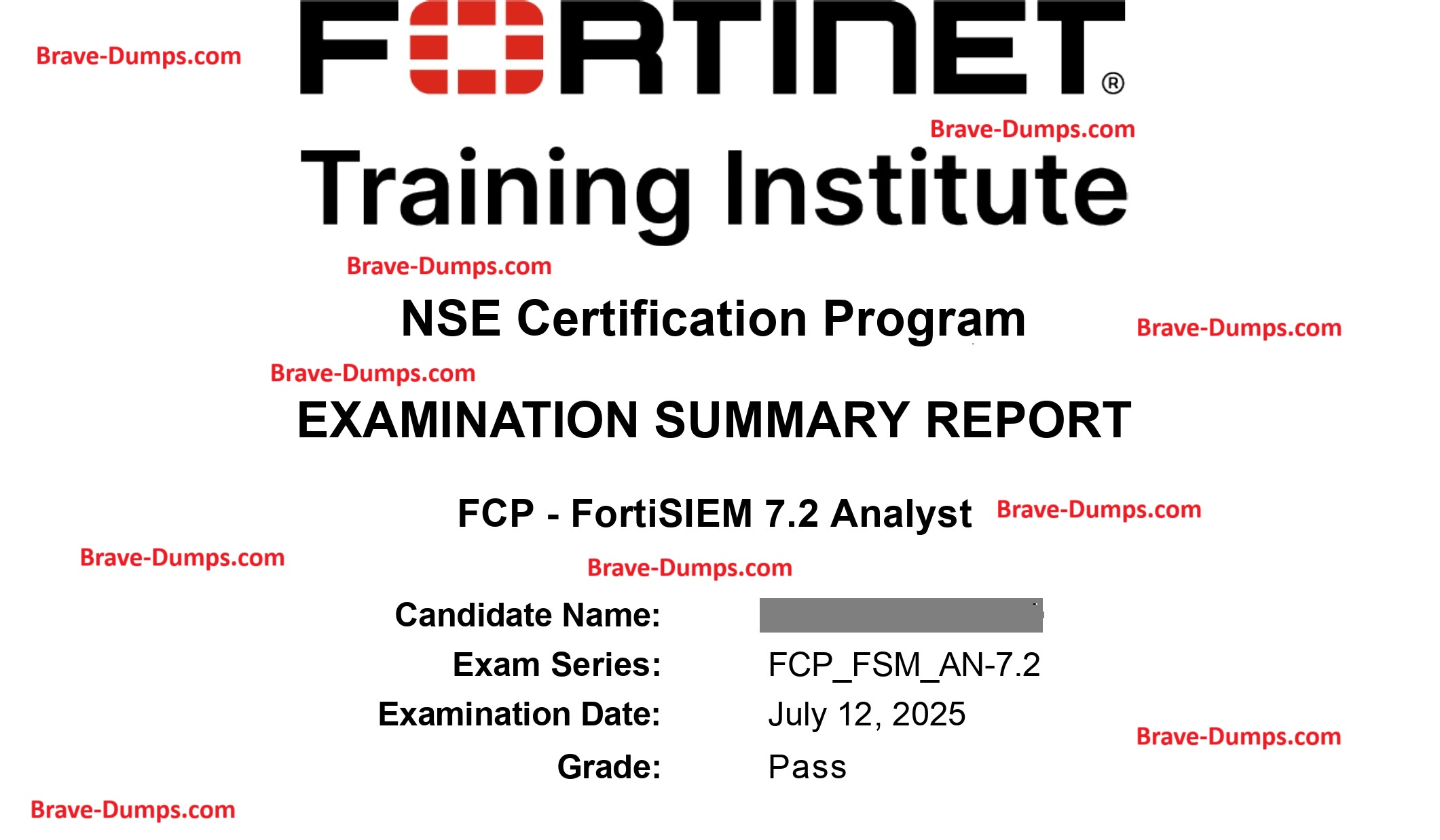 Great news for Brave-Dumps.com clients interested in the FortiSIEM 7.2 Analyst Dump (FCP_FSM_AN-7.2 Dump)! The updated dump is now available — and one of our Brave-Dumps team members has already passed the exam using it! BUT we’ll continue monitoring the exam over the next 1–2 weeks to ensure its stability and accuracy before release. Stay tuned, and good luck to everyone preparing!