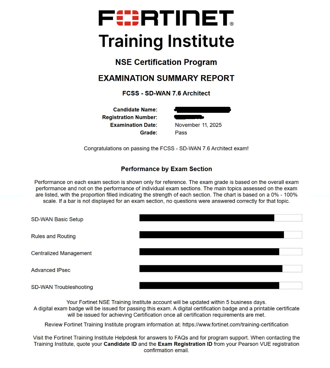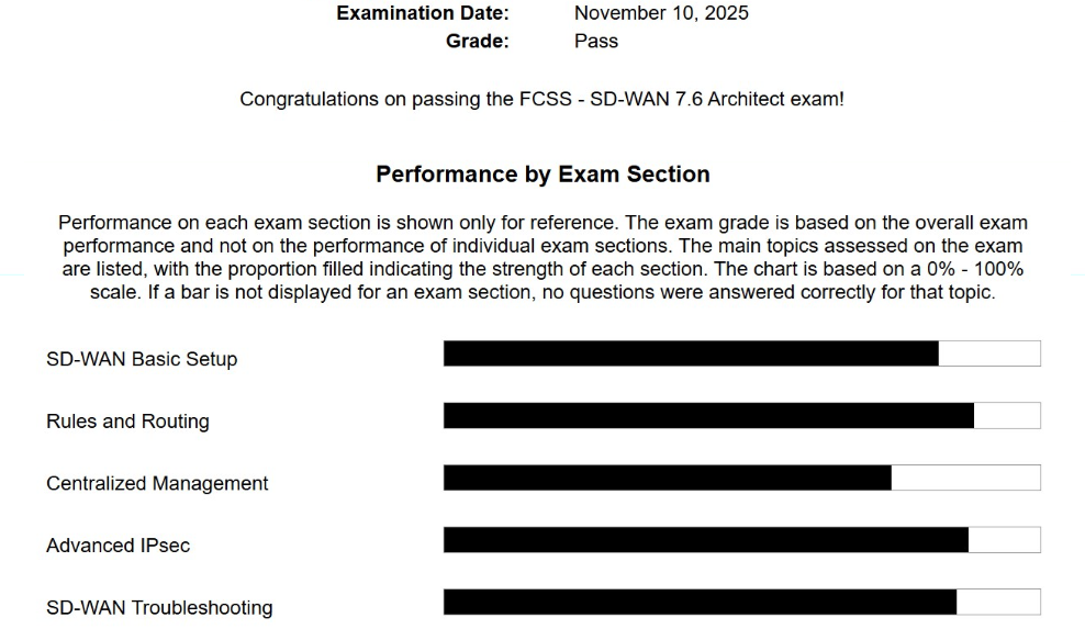 ● 100% score in the Real SD-WAN 7.6 Exam ( SDWAN 7.6 exam) at the Pearson VUE Testing Center