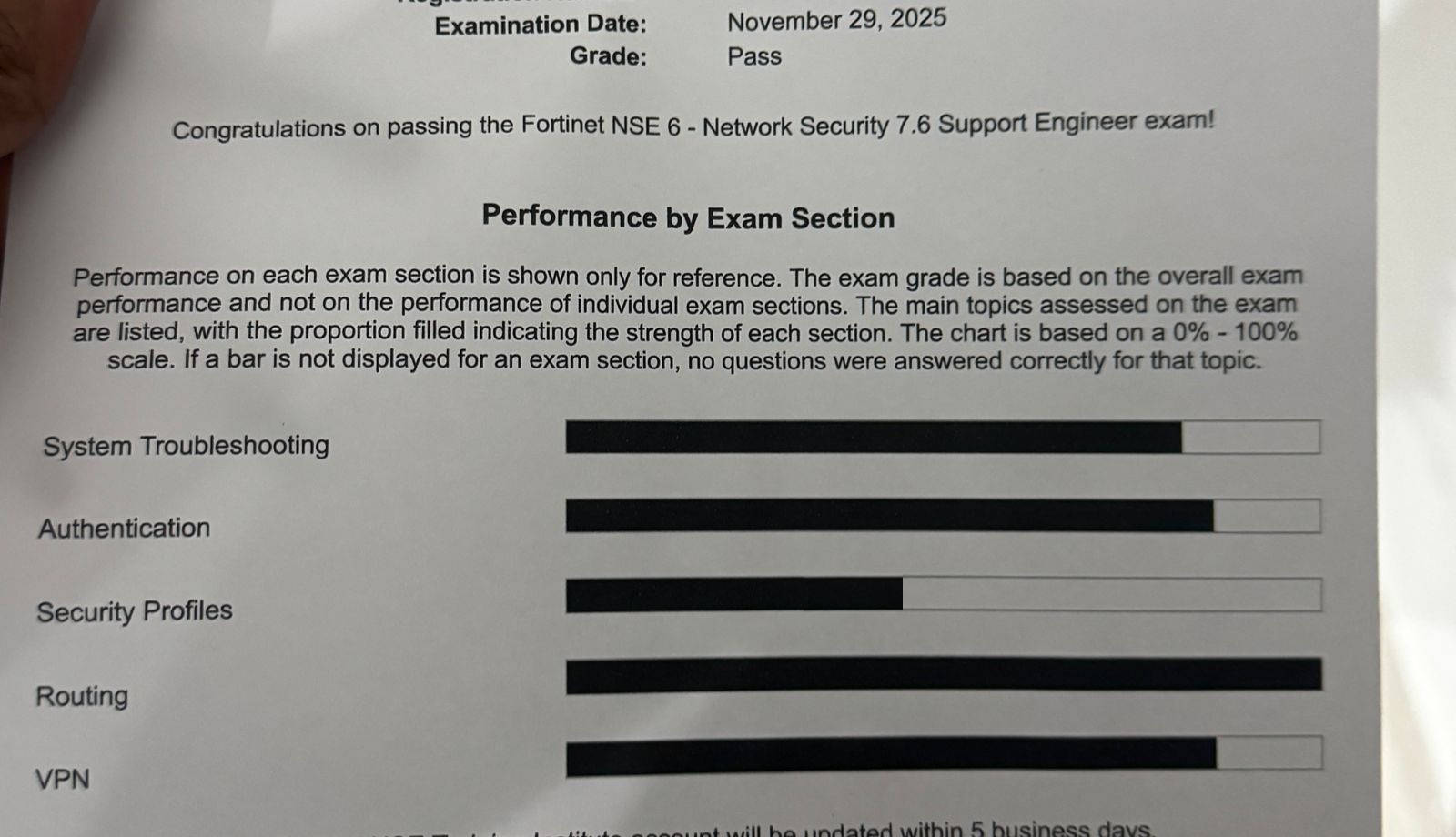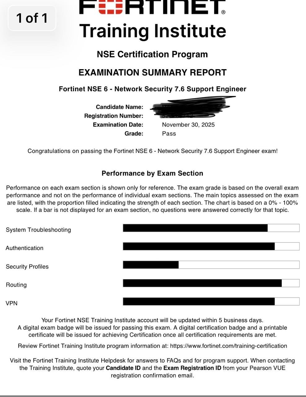 - 100% Score in the Real Network Security 7.6 Support Engineer (FCSS_NST_SE-7.6 Exam) at the Pearson VUE Testing Center