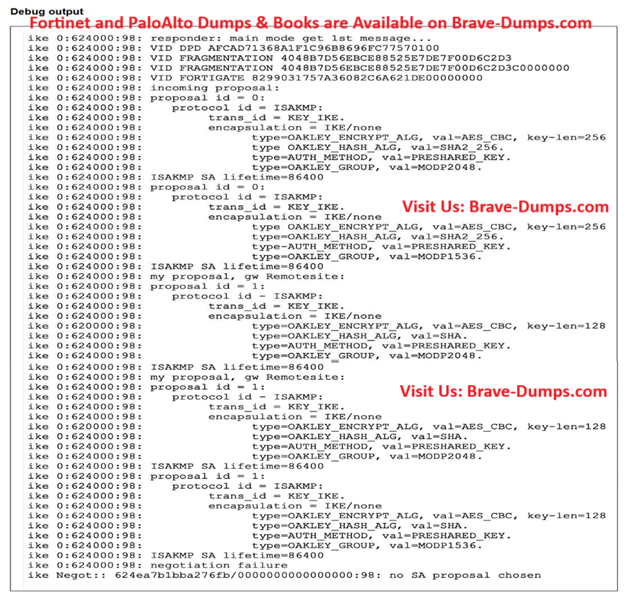 The debug command for IKE was enabled and, in the exhibit, you can review the partial output of the debug IKE while attempting to bring the tunnel up.