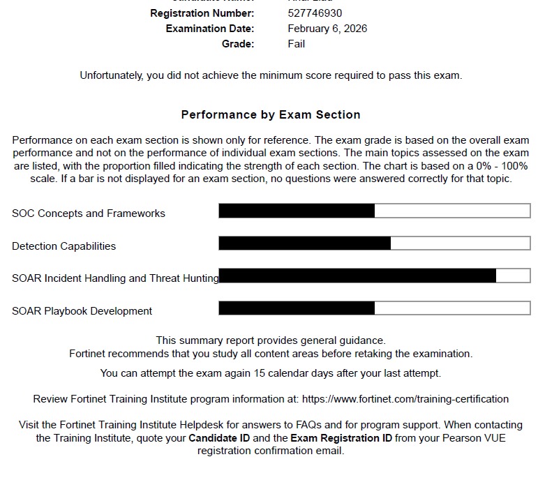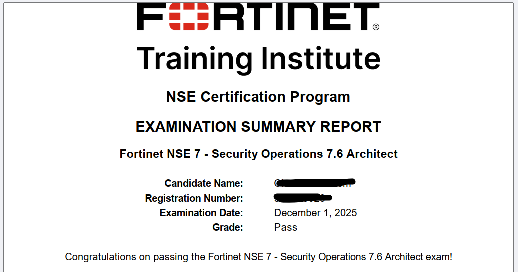 100% Score in the Real NSE 7 - Security Operations 7.6 Architect Exam (NSE7_SOC_AR-7.6 Exam) at the Pearson VUE Testing Center