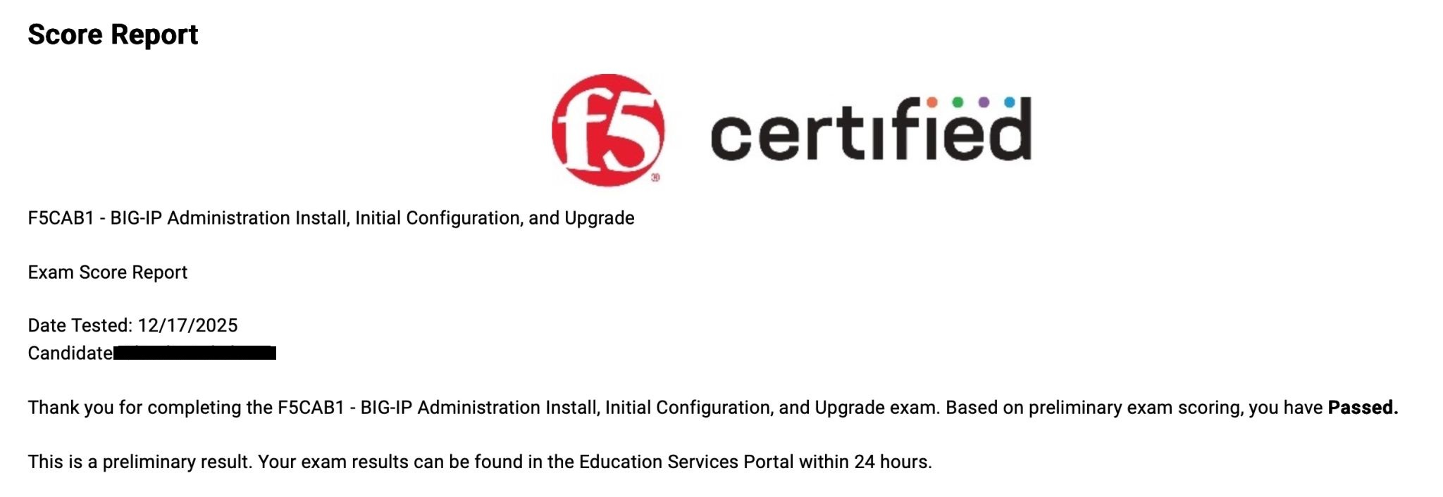 ● 100% Score in the Real BIG-IP Administration Data Plane Concepts Exam (F5CAB2 Exam) at the Testing Center