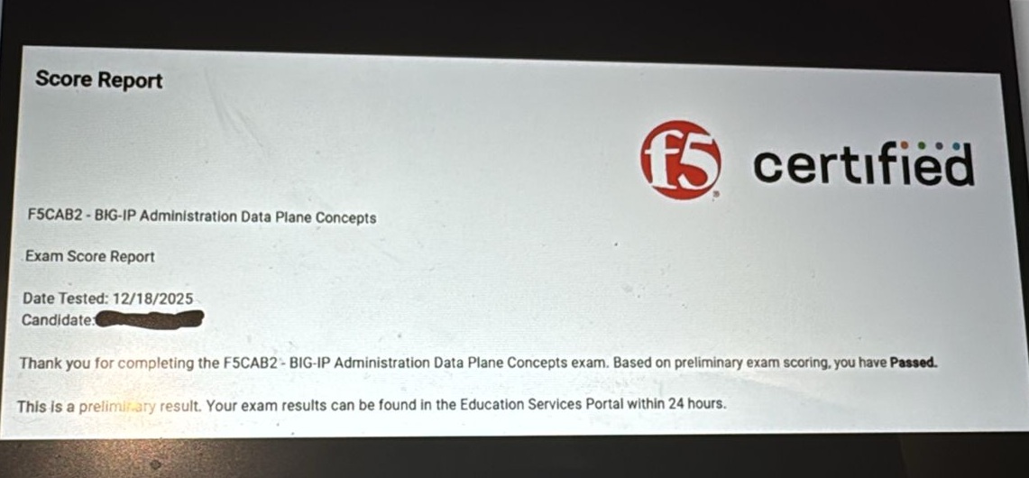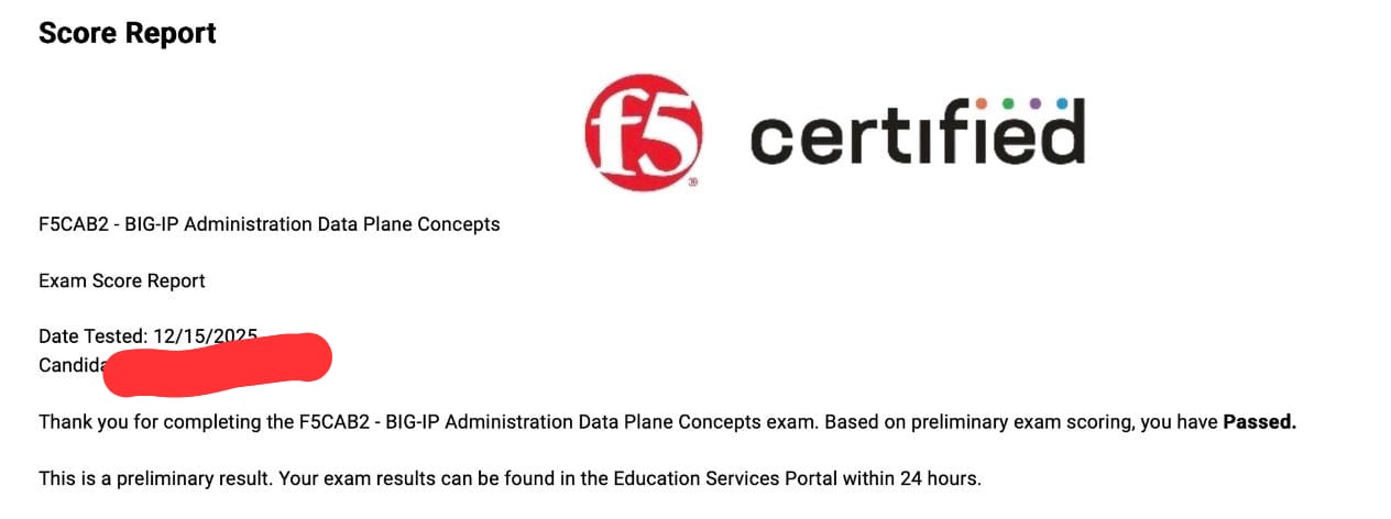 passed the second exam, BIG-IP Administration Data Plane Concepts (F5CAB2)