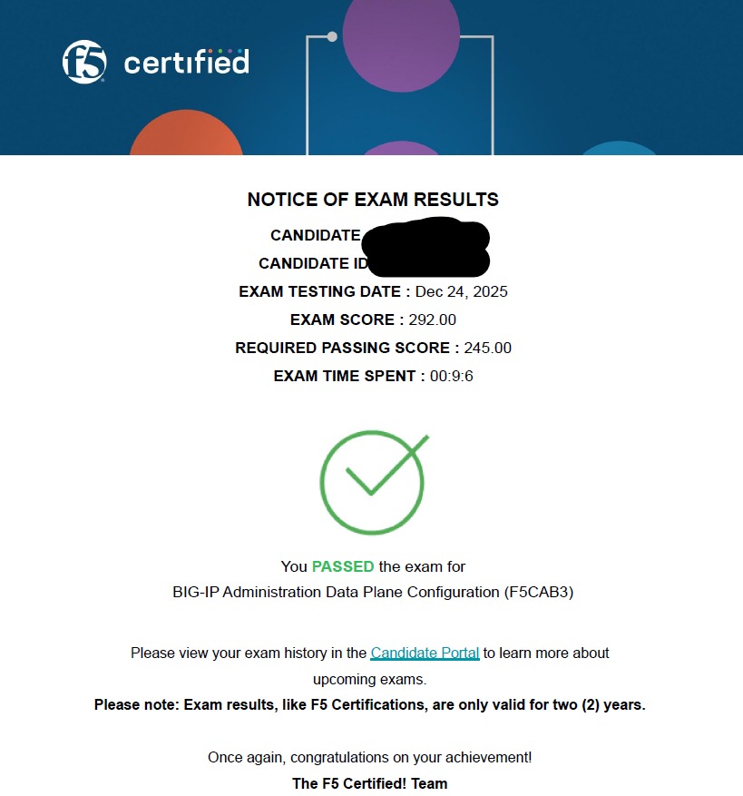 passed the third exam, BIG-IP Administration Data Plane Configuration (F5CAB3)