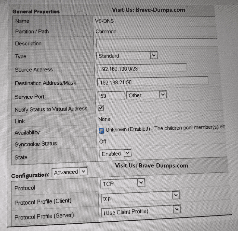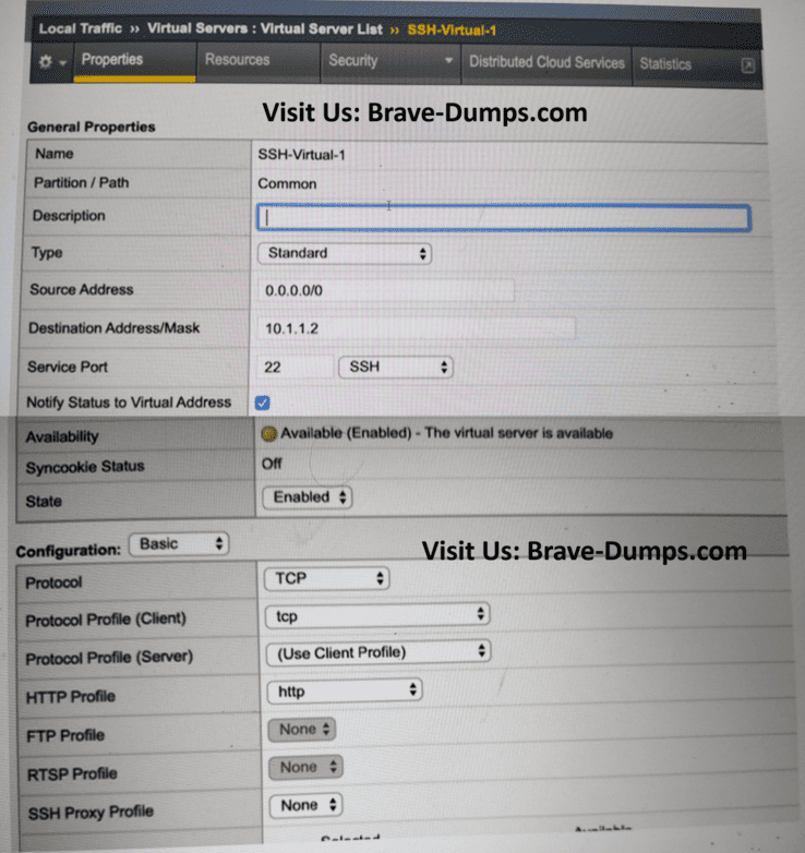 Which property change should the BIG-IP Administrator make in the Virtual Server to resolve this issue? (Choose one answer)