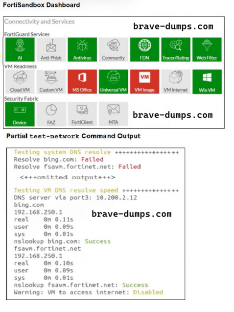 - A. FortiSandbox is using a private DNS server.