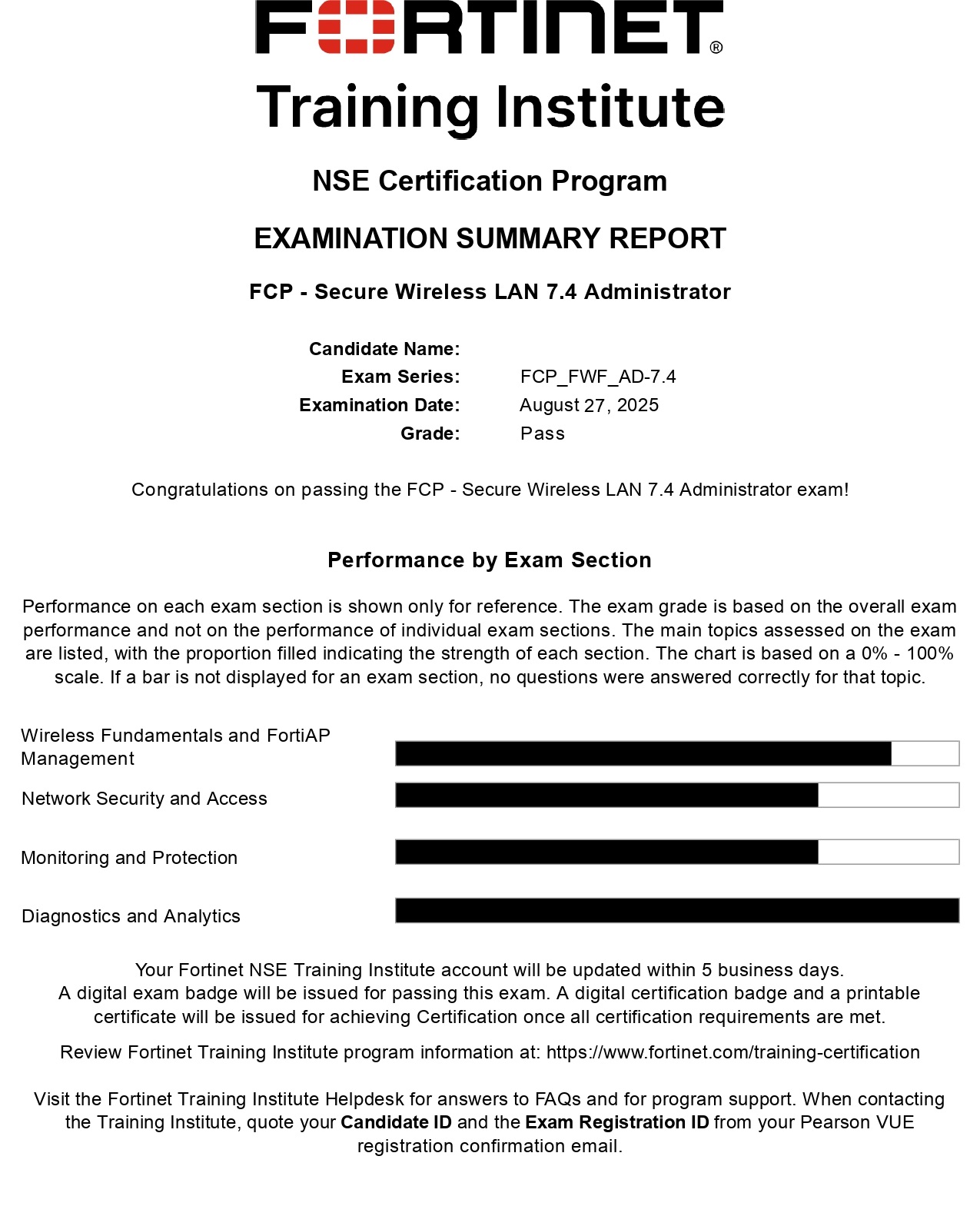 - Over 30 Students Passed Secure Wireless LAN 7.4 Administrator (FCP_FWF_AD-7.4) Using This Dump – Join Them Today!