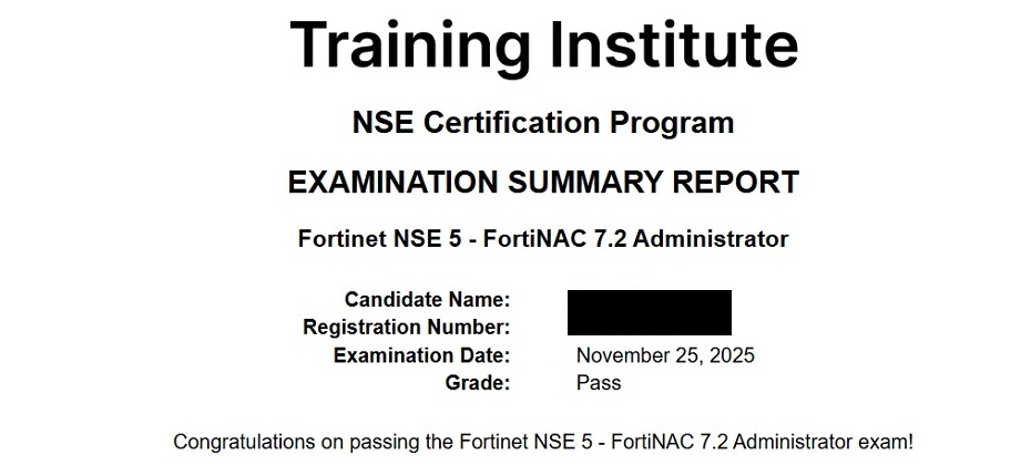 Hello Omar, Thank you for the voucher and the dump, I passed FortNAC 7.2 (August 17, 2025), and my friend passed last week (August 11, 2025)
