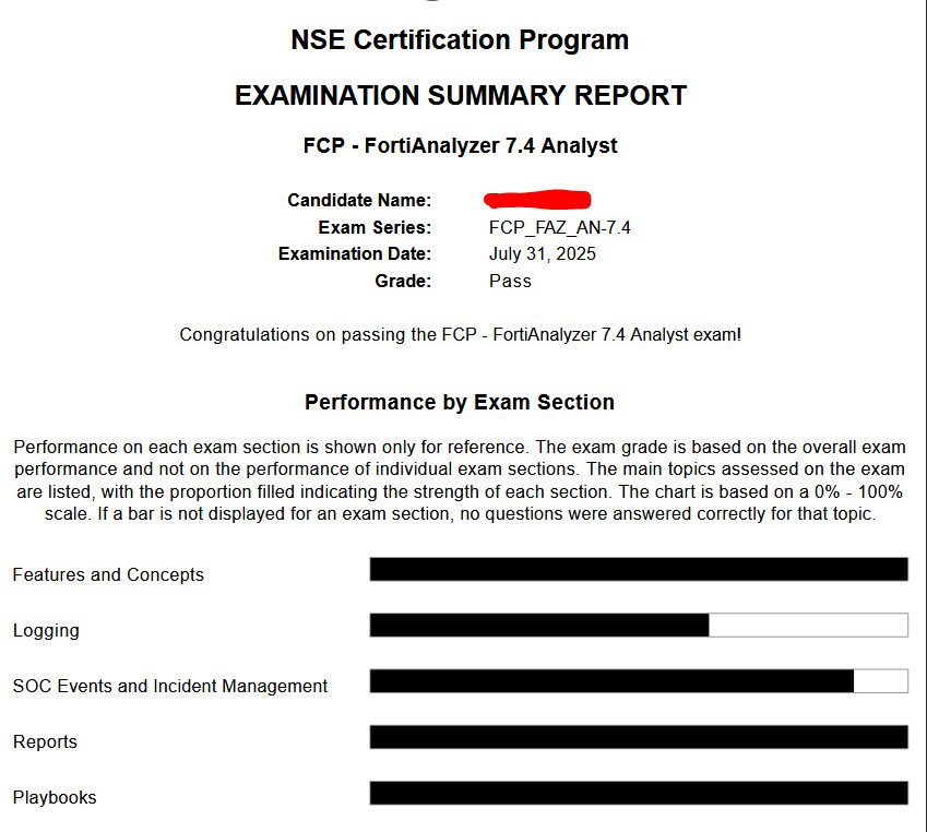 Hidden Name I passed NSE 5 - FortiAnalyzer 7.4 Analyst Exam today, thanks!