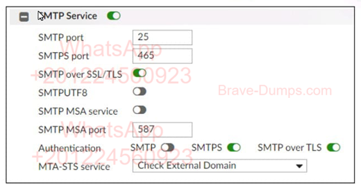 In addition to selecting Check External Domain in the MTA-STS service field, what else must an administrator do to enable MTA-STS? (Choose one answer)