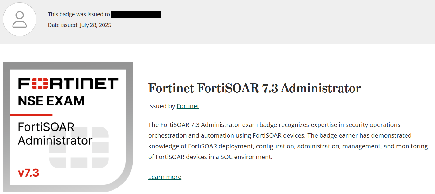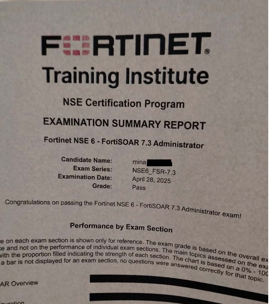 Passed Fortinet NSE 6 - FortiSOAR 7.3 yesterday thanks omar for usual support.