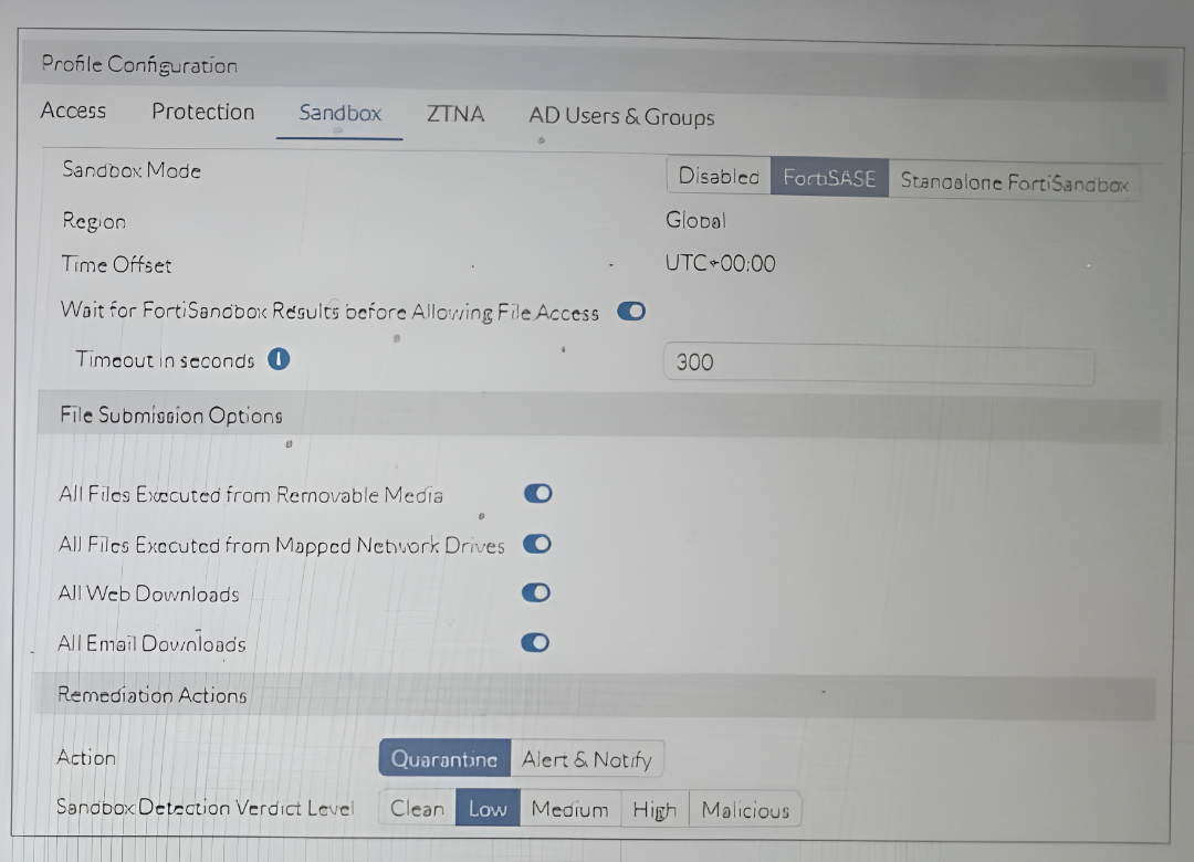 - A. FortiSASE will quarantine all infected files that FortiSandbox detects as malicious.