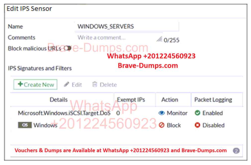 - D. The sensor will block all attacks aimed at Windows servers.
