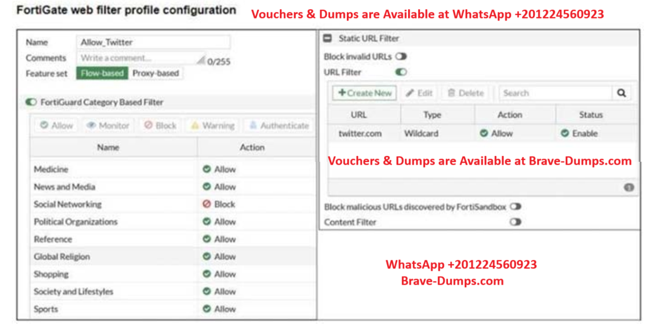 An administrator configured the web filtering profile shown in the exhibit to block access to all social networking sites except Twitter. However, when users try to access twitter.com, they are redirected to a FortiGuard web filtering block page.