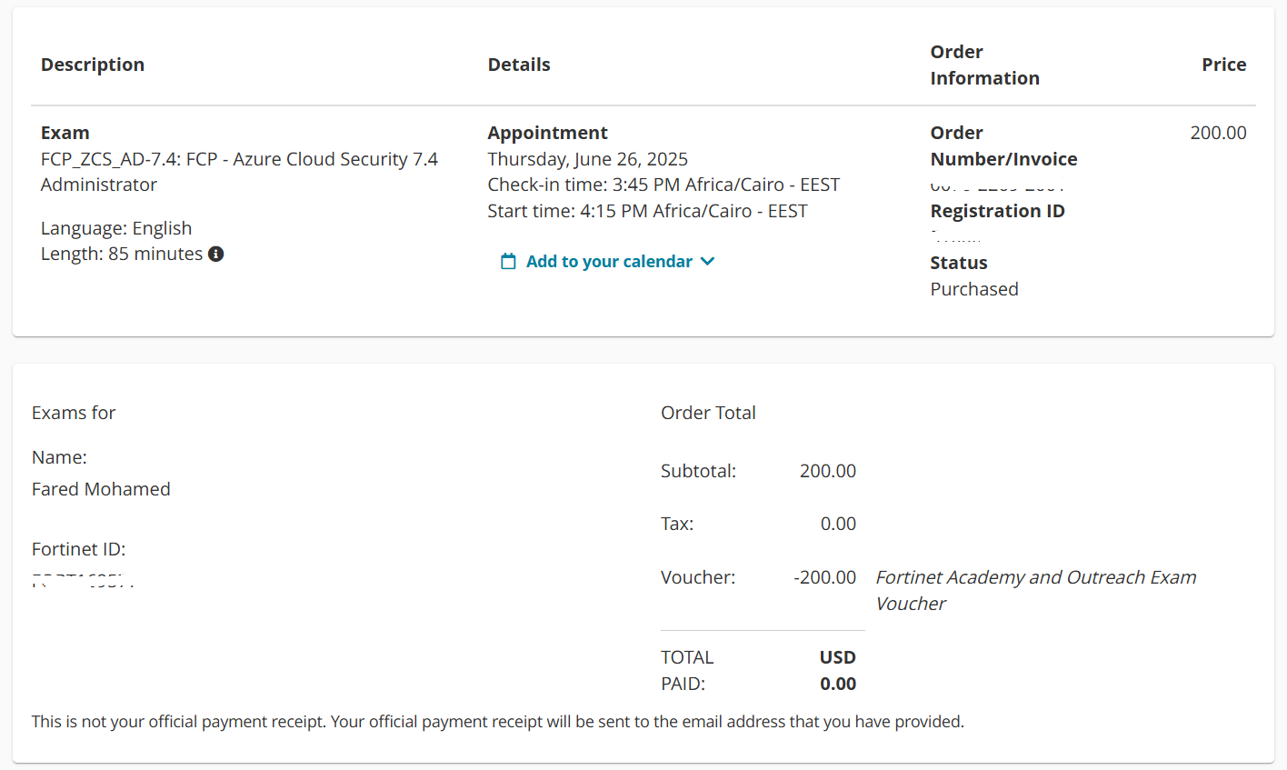 Follow these steps to redeem your Fortinet exam voucher and book your test for free: